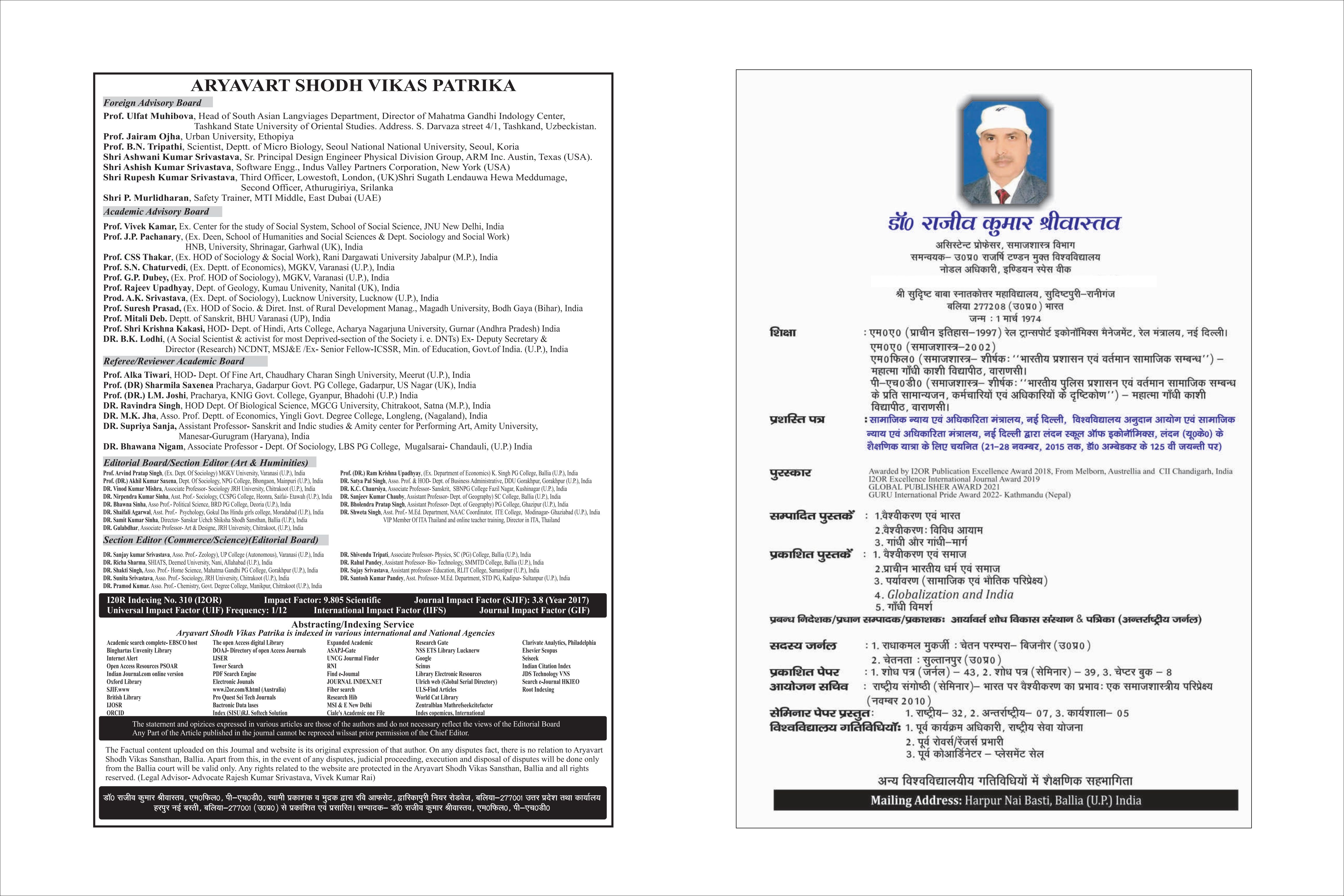 DR. Rajeev Kumar Shrivastava /Managing Director/Chief Editor/Publisher